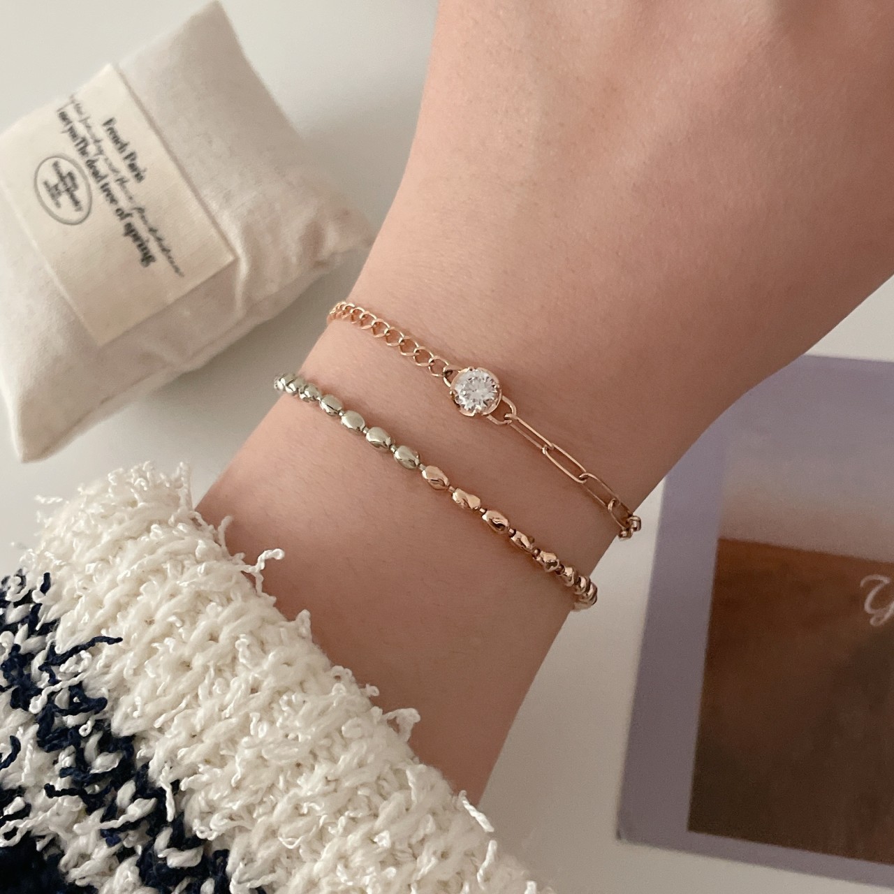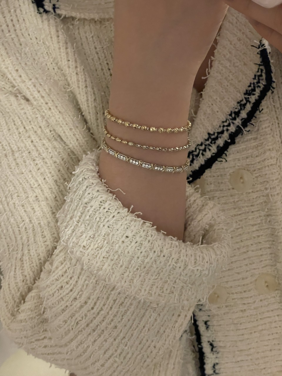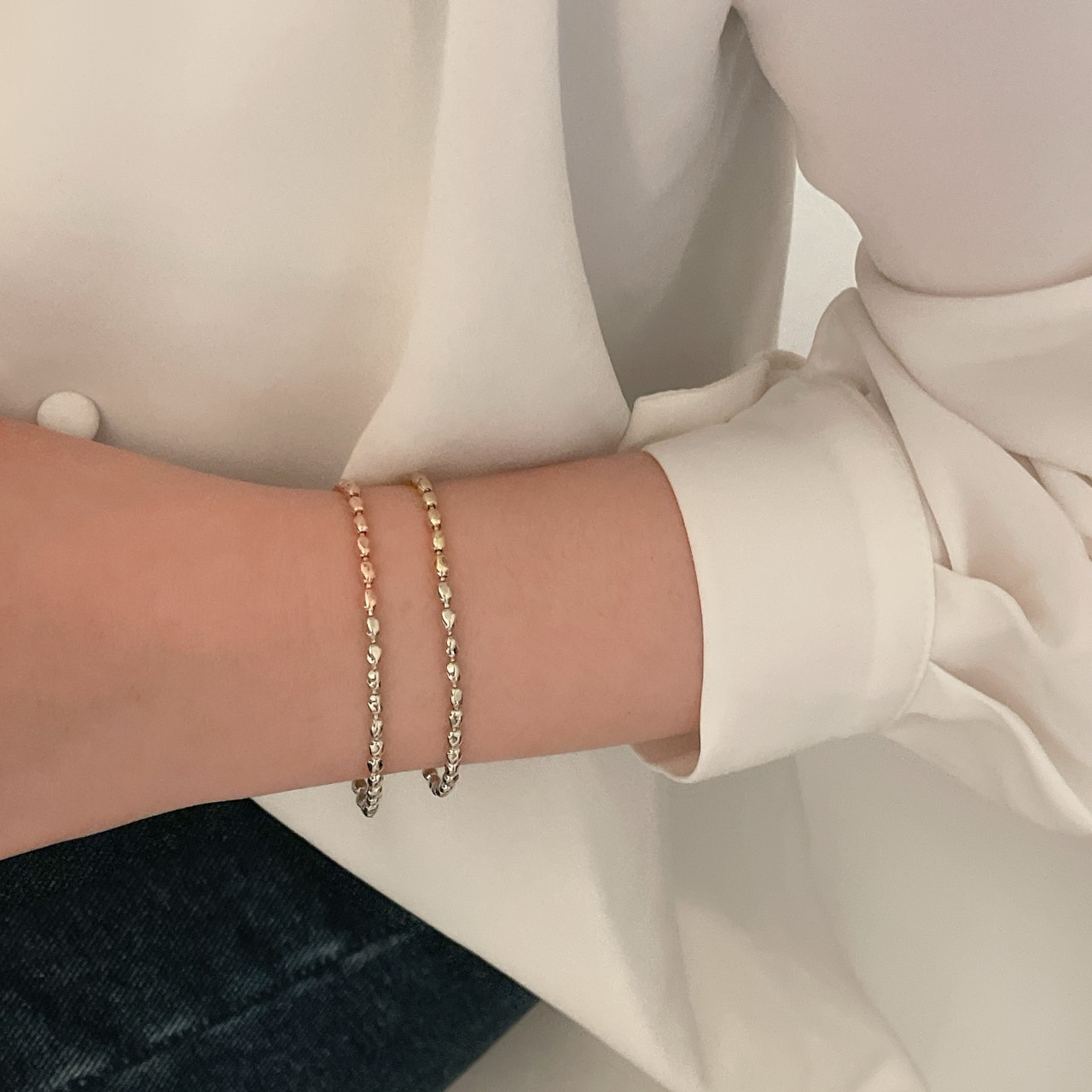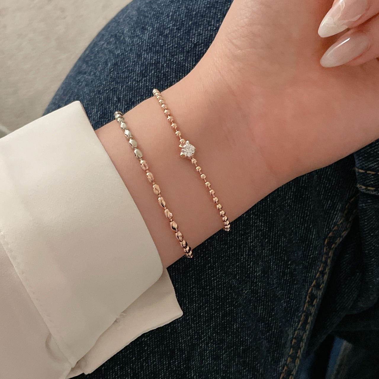 레이어드로도 손색없이 유행도 안타는 너무 예쁜팔찌죠:)